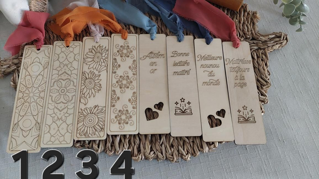 Offrez ou offrez-vous un joli marque-page en bois, parfait pour accompagner les lectures du quotidien. Que ce soit pour une nounou, un maître, une maîtresse, ou simplement avec des formes géométriques, chacun trouvera son style !