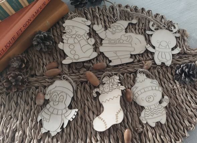 Une activité ludique et créative pour petits et grands ! Ces adorables personnages de Noël en bois sont à colorier soi-même, pour ensuite les accrocher fièrement dans le sapin